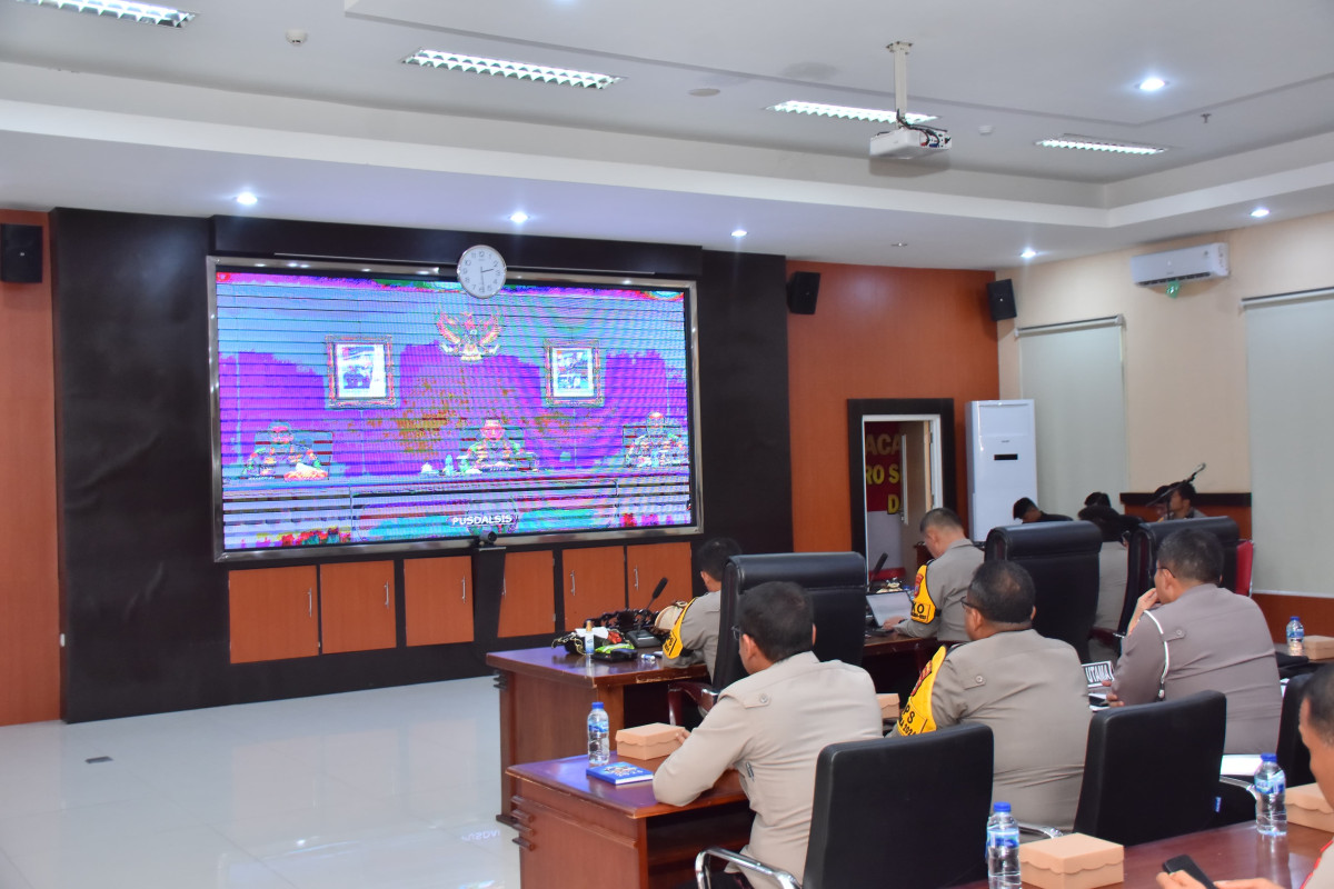 Secara virtual Kapolda Sulteng Irjen Pol. Dr. Agus Nugroho, didampingi Wakapolda Brigjen Pol. Dr. Helmi Kwarta Kusuma Putra Rauf, Irwasda dan pejabat utama Polda Sulteng mengikuti arahan Kapolri di Rupatama Polda Sulteng serta Para Kapolres Kapolresta dari Mako masing-masing, Rabu (30/4/2025)