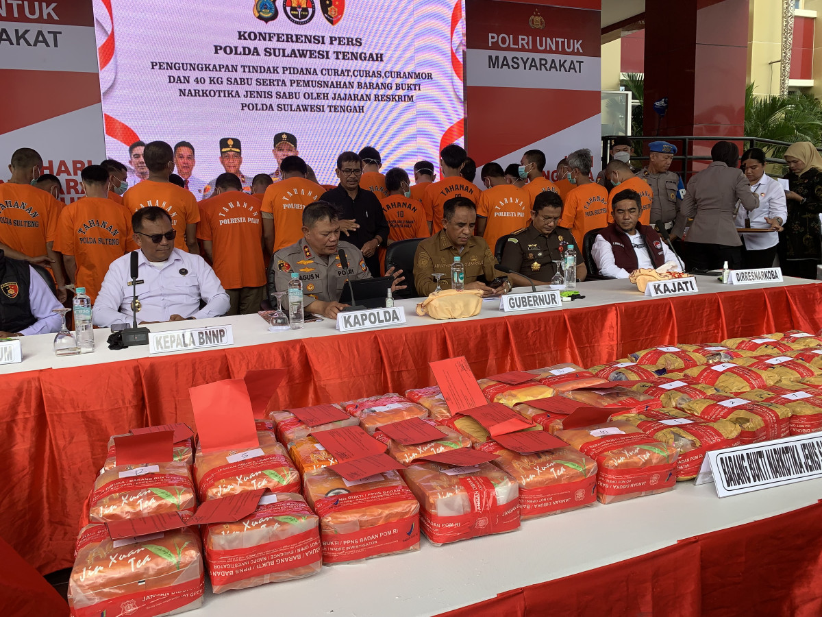 Selama semester pertama tahun 2024, Polda Sulteng berhasil menyita barang bukti narkotika jenis sabu sebanyak 55, 6 kilogram, dengan jumlah tersangka kurang lebih 400 orang. Sementara itu, sepanjang tahun ini 2025 pada semester pertama, total sabu yang berhasil diamankan mencapai 48 kilogram dari berbagai pengungkapan.