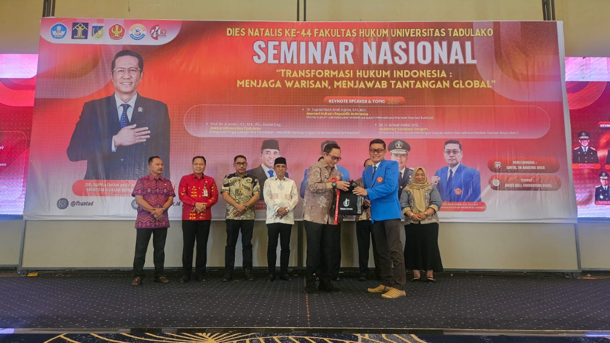 PALU, BULLETIN.ID – Momentum Dies Natalis ke-44 Fakultas Hukum Universitas Tadulako (Untad) menjadi ruang refleksi penting bagi dunia hukum Indonesia. Mengusung tema “Transformasi Hukum Indonesia: Menjaga Warisan, Menjawab Tantangan Global”, kegiatan ini menghadirkan diskusi akademis dan dukungan penuh dari lembaga legislatif daerah.