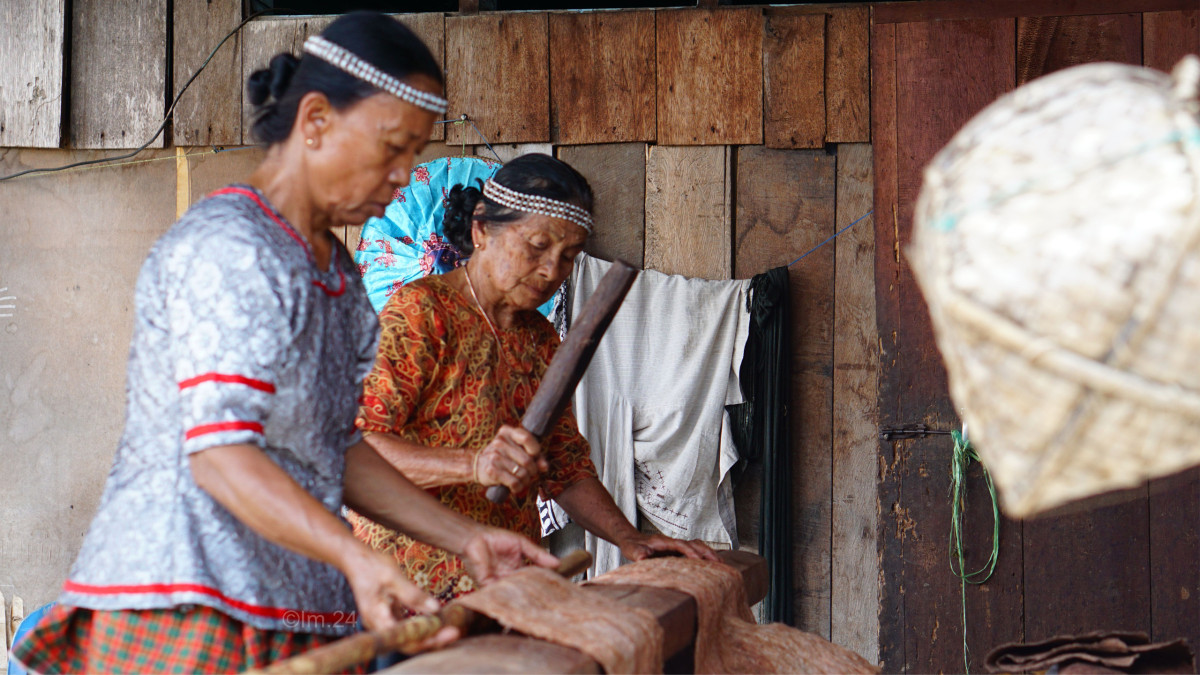 Ina Tobani, maestro kain kulit kayu dari Tanah Kulawi, telah menekuni kerajinan ini sejak lulus dari Sekolah Rakyat. Pada usia 84 tahun, ia masih aktif membuat kain kulit kayu dan menjadikannya sebagai mata pencaharian utama. “Saya sudah tua, dan sudah tidak diizinkan lagi untuk ke kebun atau ke sawah. Jadi sekarang saya hanya membuat kain kulit kayu untuk dijual,” ujarnya.