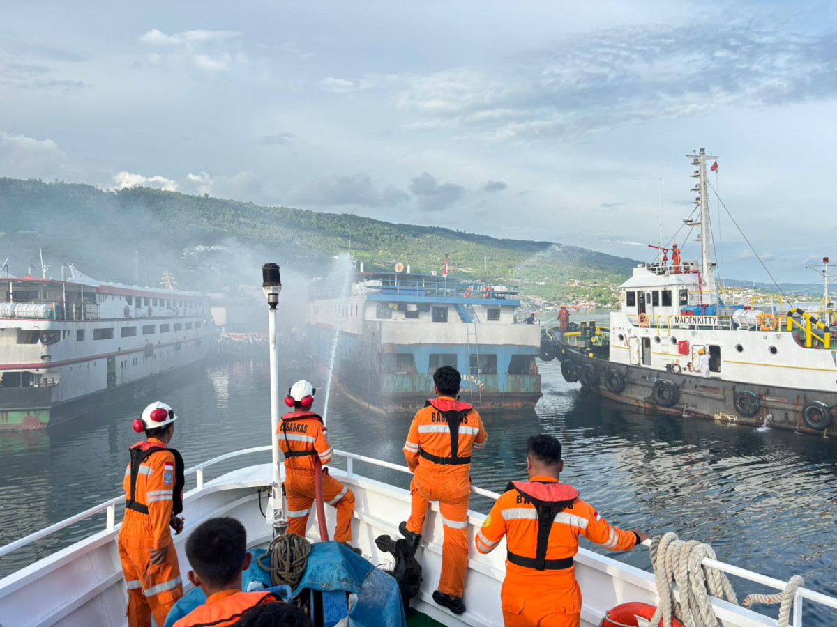Operasi ini turut melibatkan sejumlah armada pendukung, termasuk KN SAR Bhisma, kapal patroli Syahbandar, kapal tug Pertamina, hingga speed boat milik warga dan mobil pemadam kebakaran.