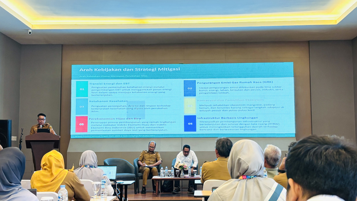 Arfan memaparkan berdasarkan data inventarisasi emisi periode 2019–2023 melalui aplikasi SIGN SMART, total emisi GRK Sulawesi Tengah pada 2023 tercatat sebesar 47.091 GgCO₂eq, dengan emisi netto mencapai 31.343 GgCO₂eq. Sementara itu, sektor kehutanan memberikan kontribusi serapan sebesar 15.747 GgCO₂eq, yang membantu menekan total emisi secara keseluruhan.