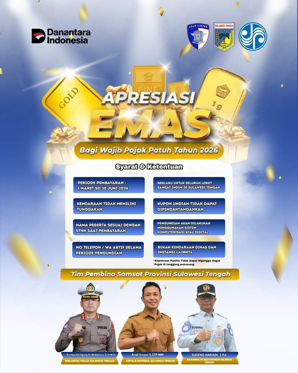 “Melalui program ini, kami berharap kepatuhan masyarakat semakin meningkat sehingga berdampak langsung pada optimalisasi PAD Sulawesi Tengah,” pungkas Sugeng.